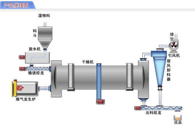2、采用順流干燥方式,煙氣與濕物料由同一側(cè)進(jìn)入干燥機(jī),可以利用高溫?zé)煔猥@得很高的蒸發(fā)強(qiáng)度,烘干機(jī)溫度低,熱效率高;
